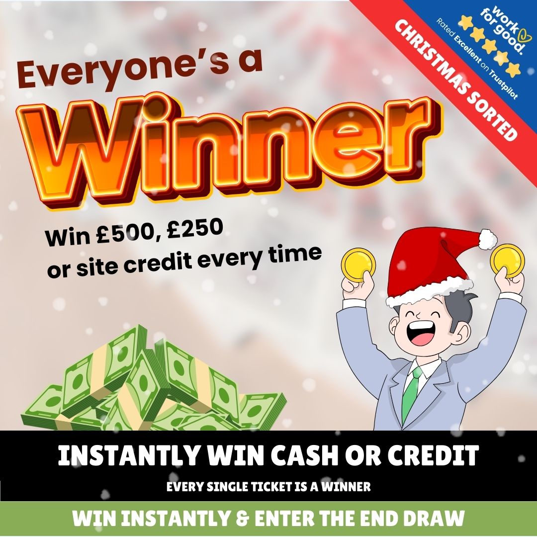 It’s simple. We are a competition website. You enter our competitions by buying tickets online (or claiming free tickets via a postal entry). Once the competition ends, either at the end date or when all the tickets have been allocated, a winner is drawn and notified via email. Simples. Plus, every ticket helps: For each ticket bought, we donate 10p to charity.