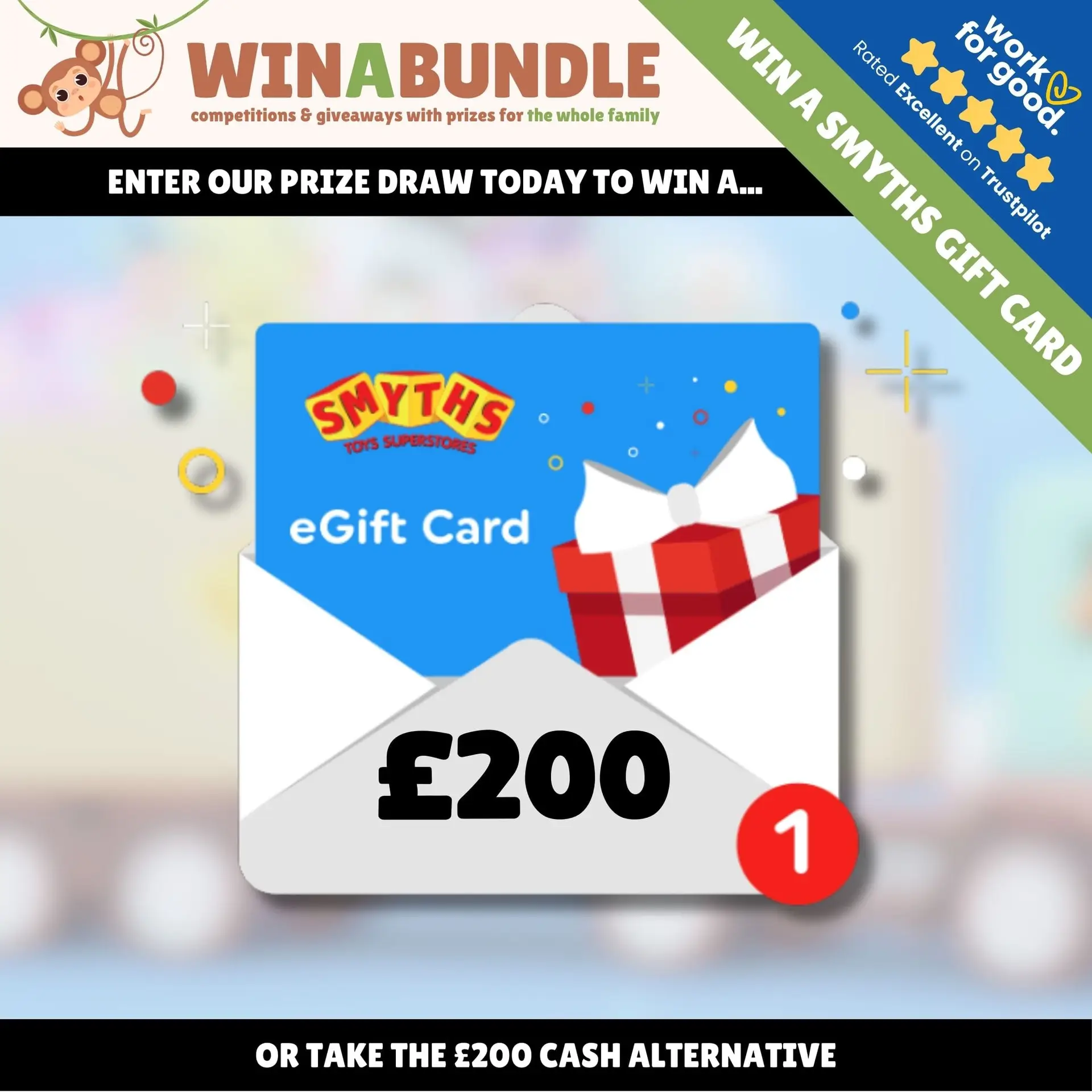 Take advantage of this incredible opportunity to win a £200 Smyths Toys Superstore gift card. Enter the competition today for just £2 per ticket online and make a difference with each entry.