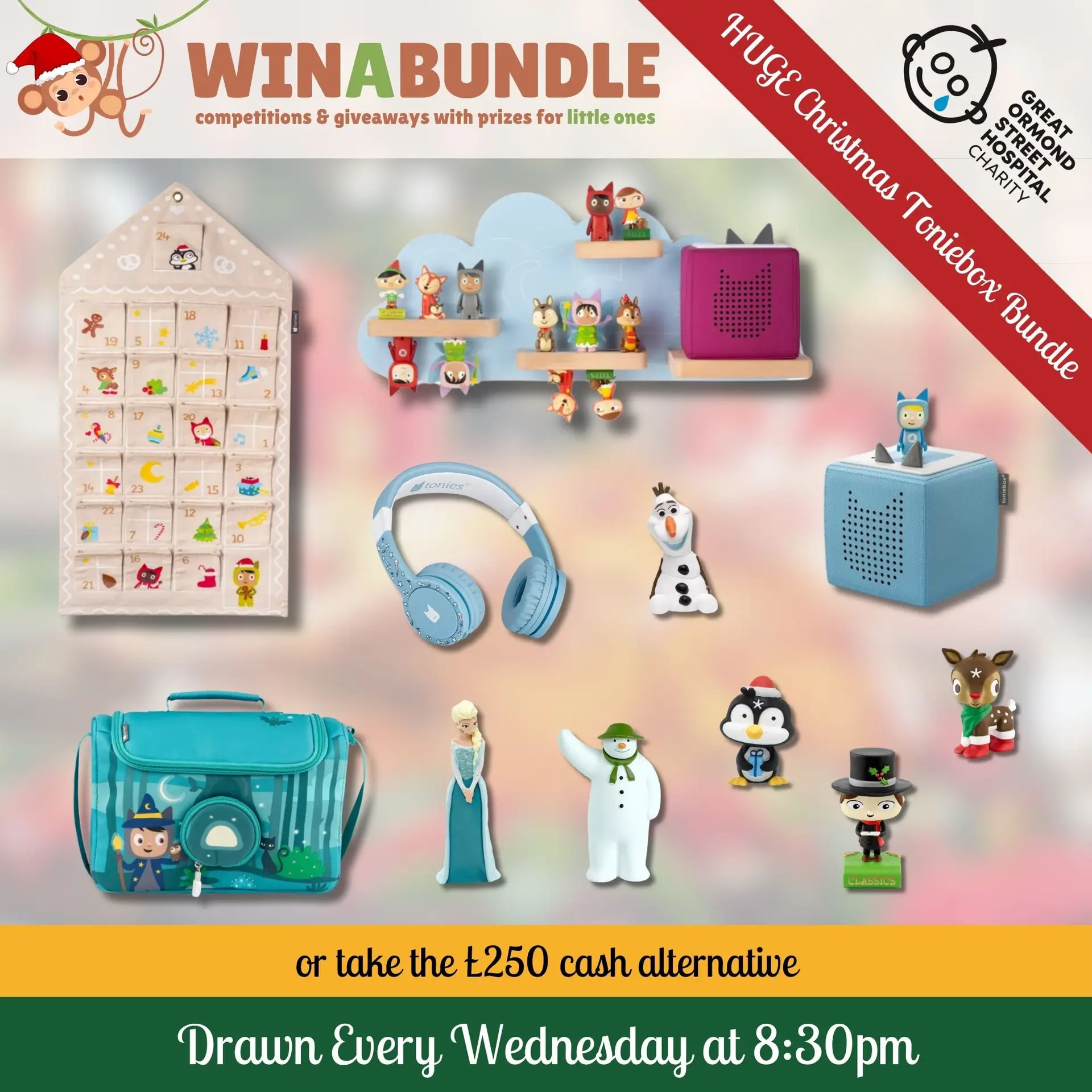 Enter our competition for just £2 per ticket online, and you could win this incredible bundle worth £250, featuring a Toniebox, Creative Tonie, 7 Tonies (including Christmas selections), a Tonies Christmas Advent Calendar, shelf, carry case, and foldable headphones – everything needed for screen-free audio adventures!