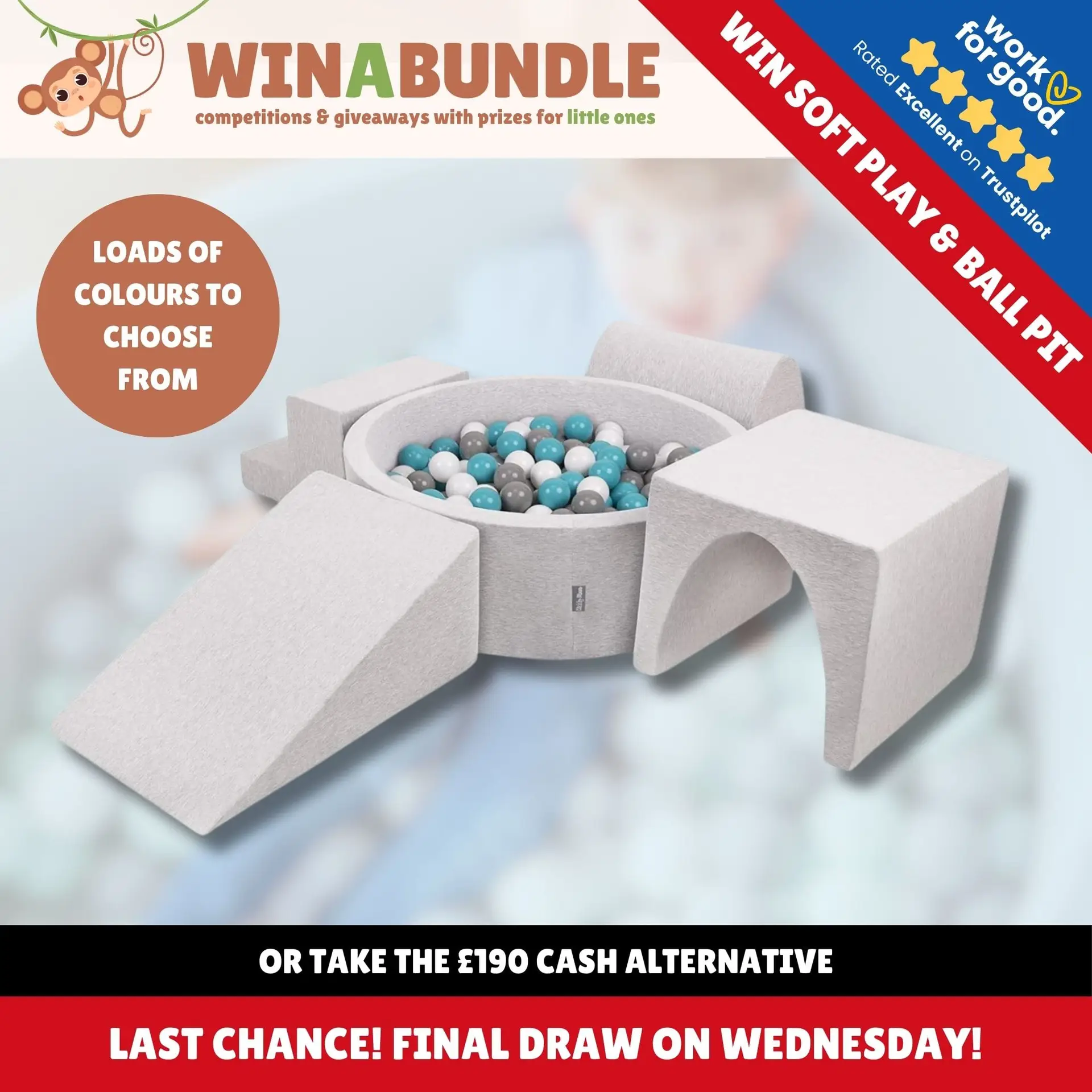 For only £2 per ticket online, you can enter the competition to win the Kiddymoon Foam Play Set with Ball Pit. Your child will enjoy hours of imaginative play with their very own versatile play set. Plus, every entry supports a worthy cause.