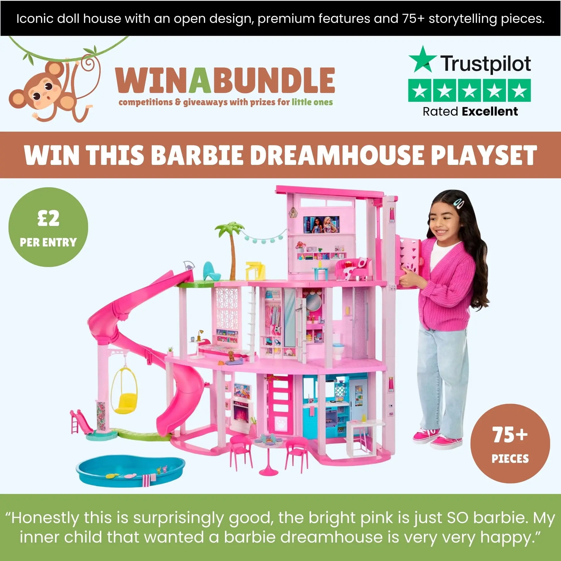 Don’t Miss Out! Provide your child with the ultimate playtime experience with the Barbie Dreamhouse Playset. Enter the competition today for just £2 per ticket and support a worthy cause with each entry.